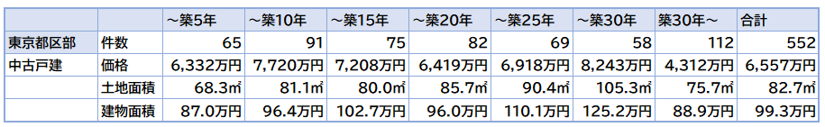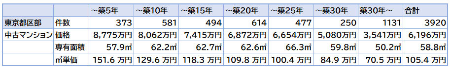 また埼玉県と東京都区部の表を比べると、同じ中古マンションの「~築5年」であっても随分価格が違います。これが立地による差ということですね。