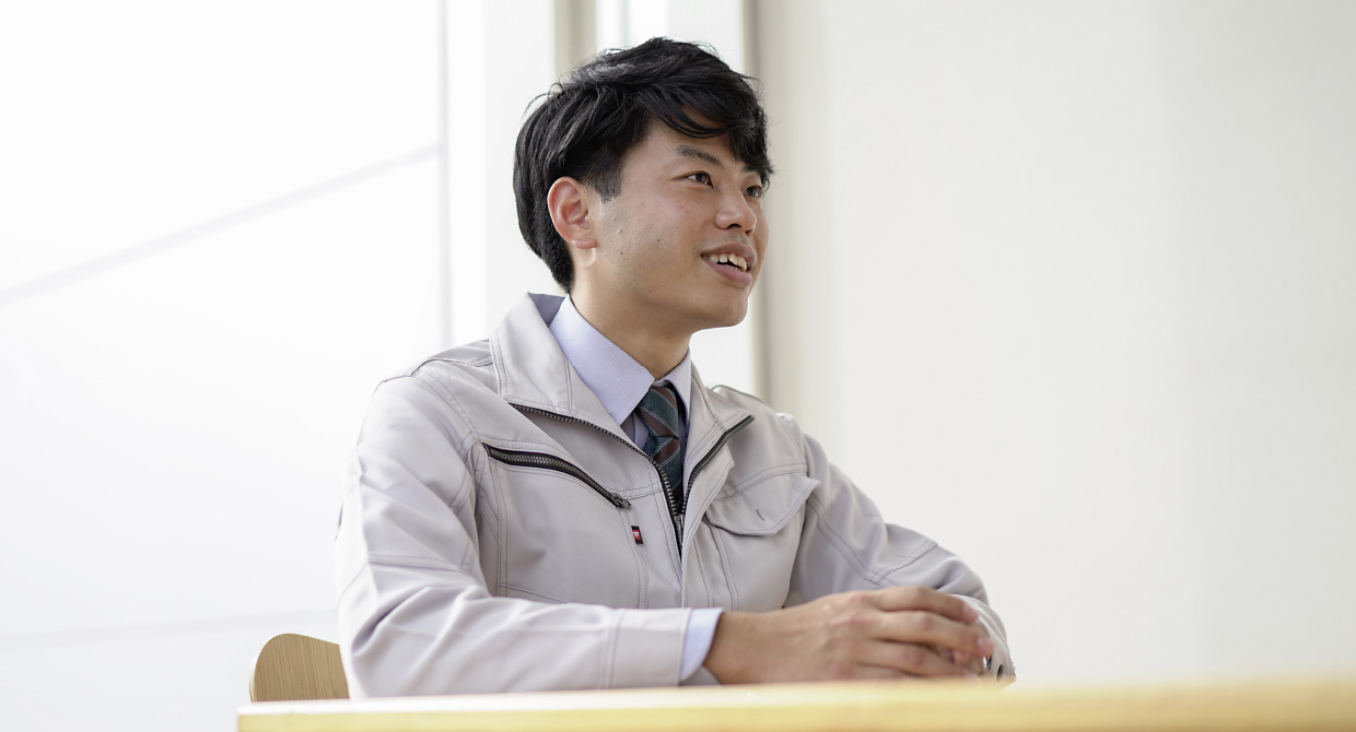 大学で学んでいたのは、RC(鉄筋コンクリート)造の構造。そのため、就職活動当初はRC造を得意とするゼネコンへの就職を希望していたが、広く建設業界を見ていく中で、ポラスグループの「一貫施工体制」の言葉に出会い、その家づくりに対する姿勢に共感。さらに、説明会で温かく迎え入れてくれた社員の人柄の良さに惹かれ、入社を決意した。入社後、現在に至るまで施工管理を担当している。