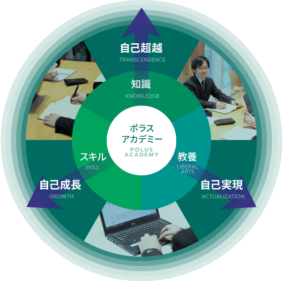 ⽬まぐるしく変化するこの時代において、社員⼀⼈ひとりがイノベーションを起こしていくための“⼈間⼒” を磨き、世の中を良くしていく⼈材に育って欲しい。それが、このポラスアカデミー設⽴への思いでした。ここで培った知識や教養、スキルは、新たなことに挑戦してやり遂げるために⽋かせない武器となるでしょうし、ここで⾝に付いた学ぶ習慣は、⽬の前の仕事をこなすだけでなく、⾃ら考え、新たな仕事をつくりだすことにもつながっていくはずです。そんなふうに、ポラスアカデミーを通じて社員⼀⼈⼀⼈が⾃⼰成⻑を⽬指し、⾃分の⼈⽣を豊かにすることで、ポラスグループの成⻑につながるだけでなく、協⼒会社の成⻑や外部企業との共創にも派⽣していくと考えています。