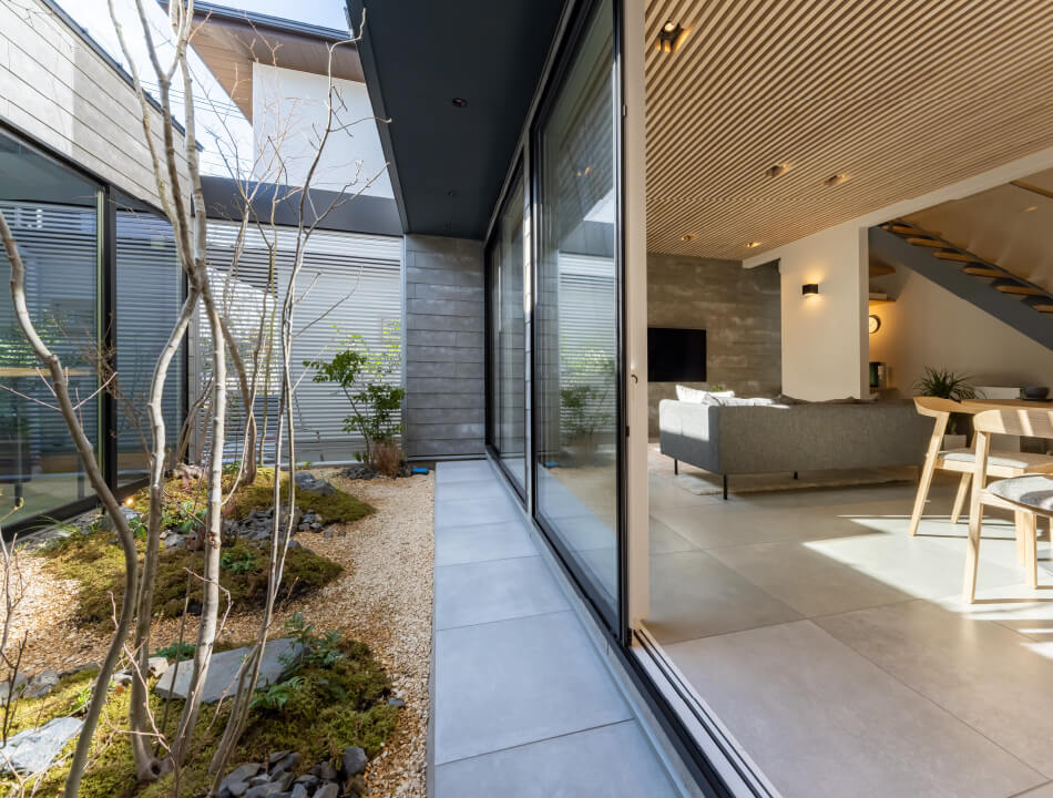 中庭を中心とした空間設計で、