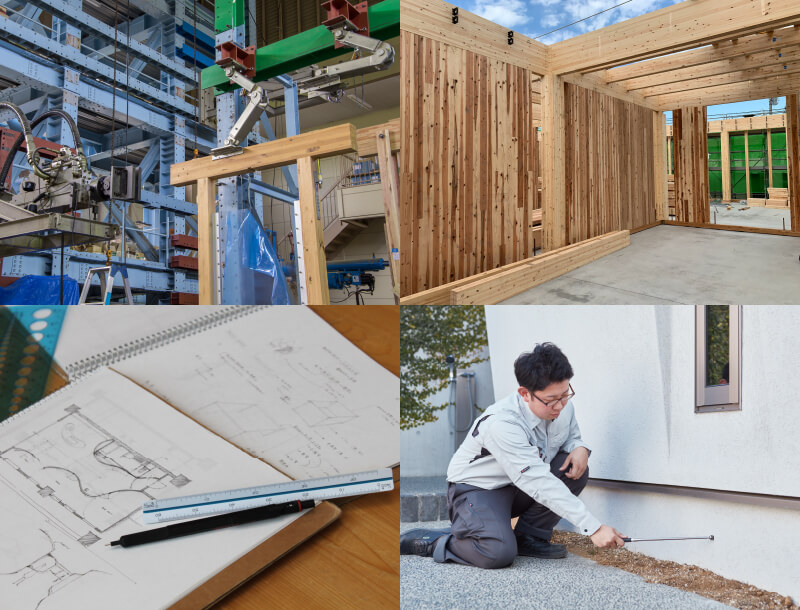そうですね。また、施工管理担当としては、山崎さんが指摘した自社の「構造設計」のみならず、自社のプレカットや社員による躯体施工に関しても、「技術力」を感じています。以前、外部の設計事務所と仕事した際は、意匠図や設備図、構造図間での図面の相違は当たり前のようにありましたが、自社設計の物件ではそういった相違はほぼゼロ。一貫施工体制だからこその安心感を常に持っていますね。
