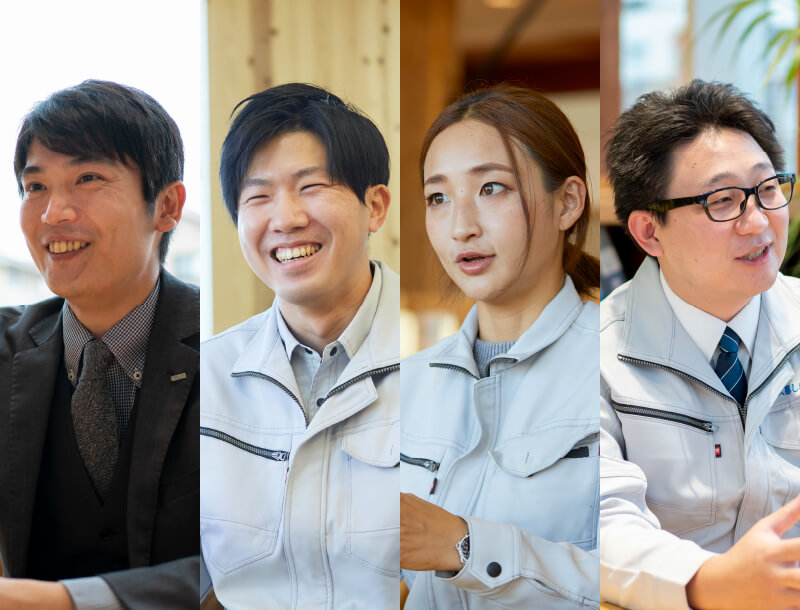 お客様にご満足いただくことはもちろん、お客様にとって期待以上の暮らしの提案を実現するために、ポラスグループは家づくりに関する技術を、磨き、蓄え、オールポラスを実現してきました。今回は、研究開発から企画設計、実際に建物をつくる現場の施工管理、そしてお引渡し後のアフターメンテナンスまで、それぞれの役割を担う技術者の方々に集まっていただき、各技術が有機的につながりながら「One Team」で展開される、ポラスの家づくりについて語り合ってもらいました。