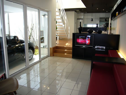 | LDK: | リビングに隣接したインナーガレージは、照明や採光にも工夫を凝らし、愛車に反射した光を室内に取り込むなど、愛車を眺めながらの暮らしを実現しています。また、リビングの床を通常より下げることによって、ガレージとの一体感を持たせました。 |