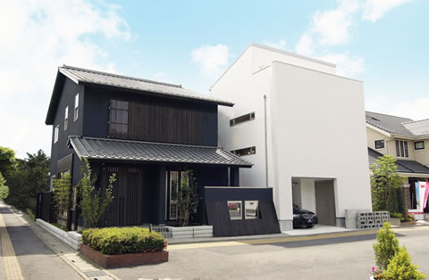 木・紙・石・草などの自然素材を取り入れ、住む人の「間」と「繋がり」を大切にした住宅です。都市部の旧来の住まいである町家の知恵を多く取り入れつつ、現代の生活スタイルを融合した新しい和の住宅を提案しています。外観は軒の低い和瓦の屋根が特徴です。内部は格子や障子などの透ける素材や視線が抜ける間取りにより、適度な距離感を保ちながら互いの気配を感じることができ、それが暮らしに寛ぎをもたらします。