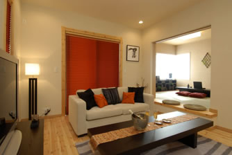 建物の外観や外構は、街並み景観を重視した調和のとれたカラーや素材を採用しています。住戸設計では現代の縁側を復活させました。室内と屋外をつなぐ中間領域といえる縁側は、自然や人との交流の場としての役割を果たしています。この縁側を現代に復活させました。それだけではなく、「気候風土・自然との共生」「フレキシブルな空間利用」「借景」などといった日本的な住思想を随所に活かした設計となっています。 また、無垢フローリングや天然素材の壁紙や左官壁など健康に配慮した素材も多用しています。