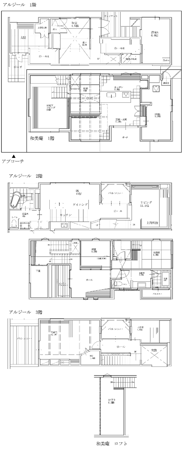 『アルジール』~ギャラリーハウス~こだわりの家具やお気に入りのアート作品に囲まれた、上質な暮しを実現する、まるでギャラリーのような家。囲まれた細長い敷地という悪条件を感じさせない、家全体に光が行き渡る、心地よい空間を提案しています。