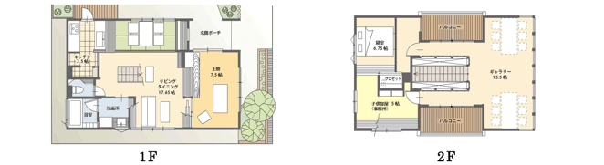 | 延床面積: | 33.00坪(109.30m2) 1F:17.63坪(53.38m2) 2F:16.38坪(50.92m2) |