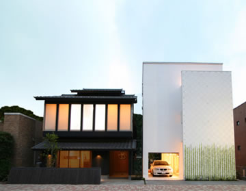 一方の『和美庵(わびあん)』は、京町屋の伝統と知恵に現代風のアレンジを加え、コンパクトな空間の中に個性的な和の感性を凝縮させた和風モダン住宅です。アルジールとは対象的なシンボリックな2階の全面窓にも、グループオリジナルの耐力壁が使用され、狭小地でも明るい家づくりを可能にしています。
