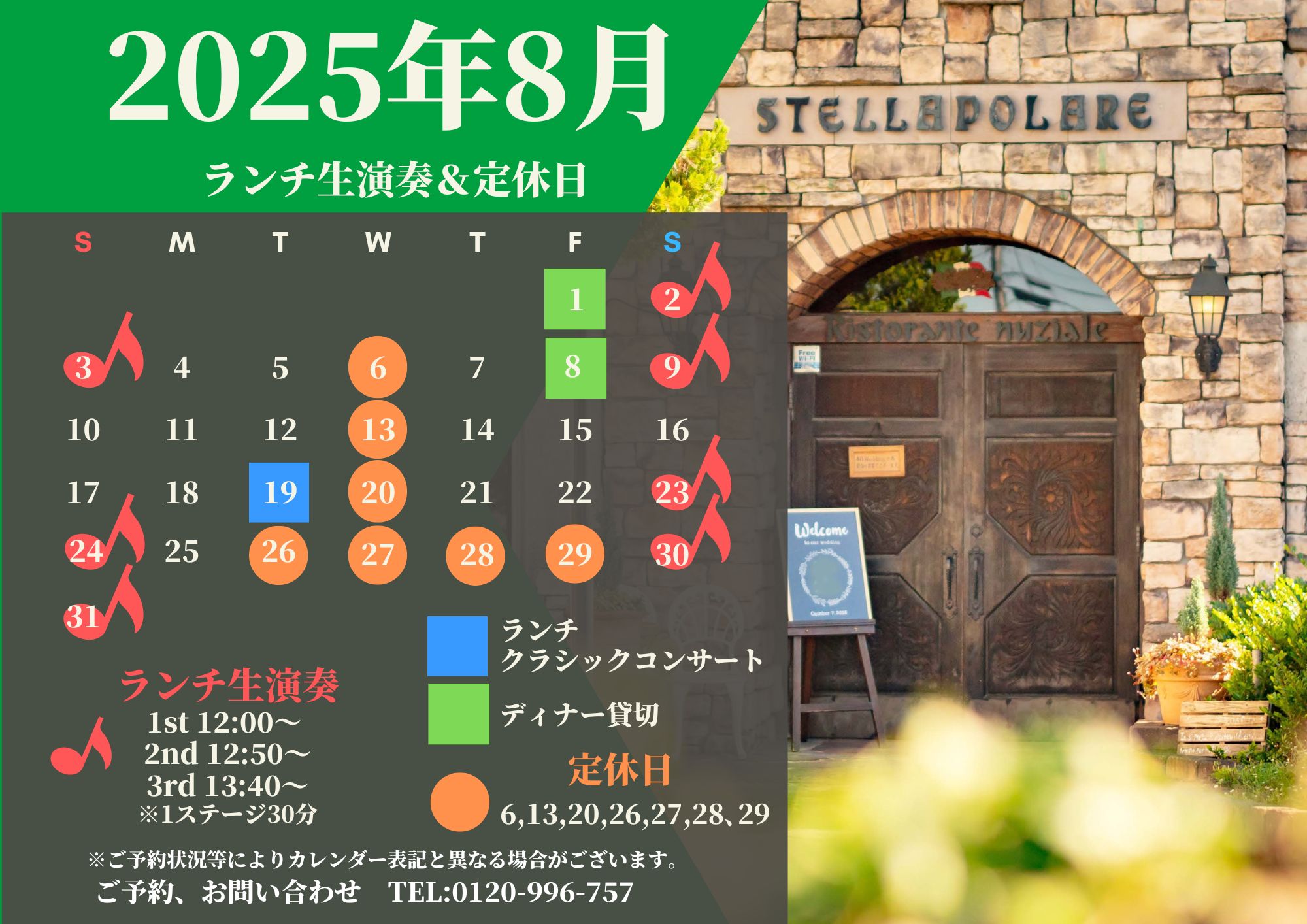 8月の休業日とランチピアノ演奏のお知らせ2025/08/10