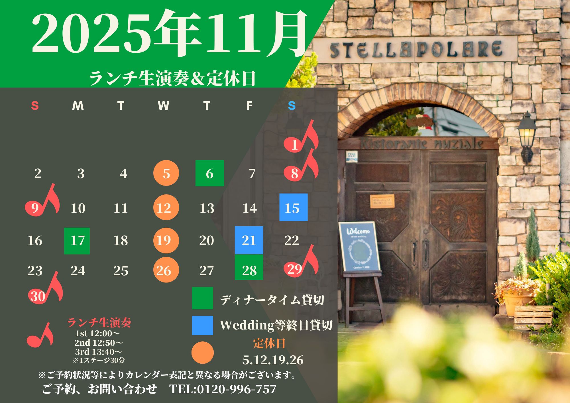 11月の休業日とランチピアノ演奏のお知らせ2025/10/24